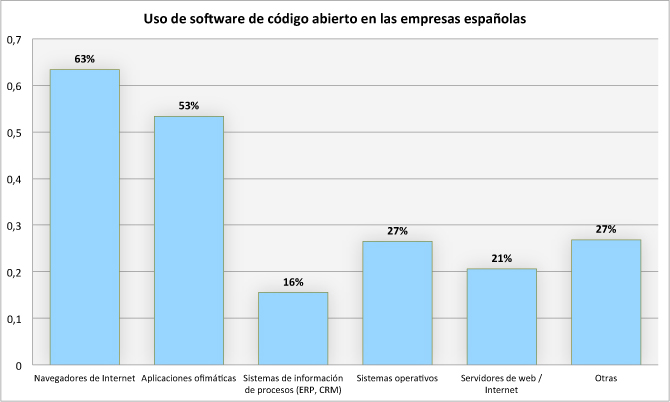 La mayor parte del porcentaje de empresas españolas que utilizan Software Libre se explica por el uso de navegadores de internet, una tecnología utilizada por el 63% de las empresas que disponen de aplicaciones de código abierto.